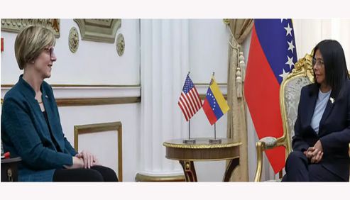 தென் அமெரிக்க நாடான வெனிசுலாவில் நீண்ட காலமாக அரசியல் குழப்பம் நீடித்து வருகிறது. அந்நாட்டின் அதிபராக இருந்த நிக்கோலஸ் மதுரோ பதவியில் இருந்து அகற்றப்பட்டதை அடுத்து, டெல்சி ரோட்ரிக்ஸ் இடைக்கால அதிபராகப் பொறுப்பேற்றுள்ளார். இந்நிலையில், வெனிசுலா மற்றும் அமெரிக்கா இடையே கடந்த 2019-ம் ஆண்டு முதல் துண்டிக்கப்பட்டிருந்த தூதரக உறவுகளை மீண்டும் புதுப்பிக்கும் வகையில் ஒரு முக்கிய முன்னேற்றம் ஏற்பட்டுள்ளது. வெனிசுலா தலைநகர் கரகாசில் உள்ள அதிபர் மாளிகையில், அமெரிக்க தூதர் லாரா டோகு மற்றும் இடைக்கால அதிபர் டெல்சி ரோட்ரிக்ஸ் ஆகியோர் நேரில் சந்தித்துப் பேசினர். இந்த சந்திப்பின் போது, இரு நாடுகளுக்கும் இடையே வர்த்தகம் மற்றும் எரிசக்தி (கச்சா எண்ணெய்) குறித்து ஆலோசிக்கப்பட்டது.