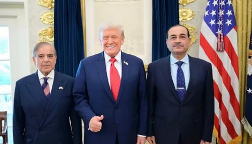 இந்நிலையில், அமெரிக்க அதிபர் டிரம்ப்பை பாகிஸ்தான் பிரதமர் ஷபாஸ் ஷெரீப் மற்றும் ராணுவ தளபதி ஆசிம் முனீர் ஆகியோர் சந்தித்தனர். வெள்ளை மாளிகையில் இந்த சந்திப்பு நடைபெற்றது. இந்த சந்திப்பின்போது அமெரிக்கா – பாகிஸ்தான் உறவு, சர்வதேச அரசியல் சூழ்நிலை, வர்த்தகம் உள்பட பல்வேறு விவகாரங்கள் குறித்து மூவரும் ஆலோசனை நடத்தினர். இந்தியாவுடனான உறவில் சிக்கல் நீடித்து வரும் நிலையில் அமெரிக்க அதிபர் டிரம்ப் பாகிஸ்தானுடன் நெருக்கம் காட்டுவது சர்வதேச அரசியல் சூழ்நிலையில் பரபரப்பை ஏற்படுத்தியுள்ளது.