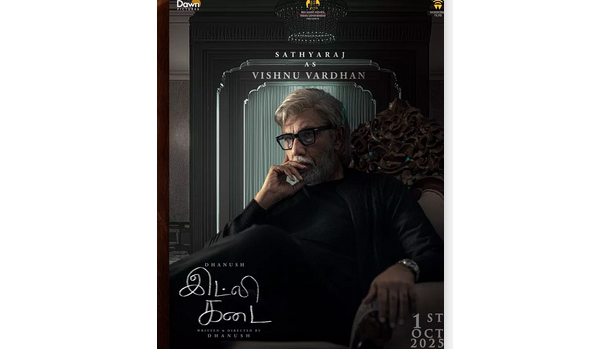 இட்லி கடை படத்தில் சத்தியராஜ் கதாப்பாத்திர அறிமுக பதாகை