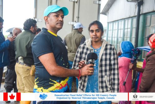 அண்மையில் இலங்கையின் அனைத்துப் பகுதியிலும் வெள்ளம் மற்றும் மண்சரிவு போன்ற இயற்கை அனர்த்தங்கள் காரணமாக அங்குள்ளவர்களுக்கு உதவிகள் தேவை என்பதை அறிந்த கனடா மொன்றியால் அருள்மிகு திருமுருகன் ஆலய நிர்வாக சபையினர் தகுந்த அமைப்புக்கள் மற்றும் சேவையாளர்களை அணுகிய போது திருவாளர்கள் பிரதீபன் மகேந்திரன் மற்றும் மனோஜ் ராஜகோபால் மற்றும் அவர்களது குழுவினர் இந்த பணிக்கு ஏற்றவர்கள் என்பதை அறிந்து கொண்டார்கள்.