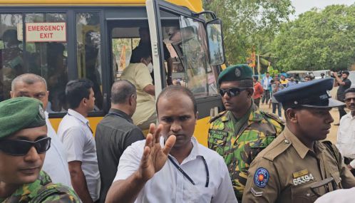 உடனே அங்கிருந்த சஜித்தின் பாதுகாப்பு பிரிவினர் ஊடகவியலாளர்களின் கேமராவினை கையால் தட்டி புகைப்படம் மற்றும் காணொளி எடுக்க வேண்டாம் என அச்சுறுத்தினர். இதனால் அங்கு சலசலப்பு ஏற்பட்டது.