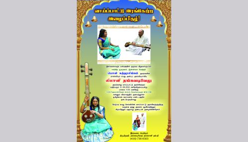 1120 Tapscott Road, Unit-3, Scarborough, M1X 189 என்னும் விலாசத்தில் அமைந்துள்ள தமிழிசைக் கலாமன்ற மண்டபத்தில் நடைபெறவுள்ளது.