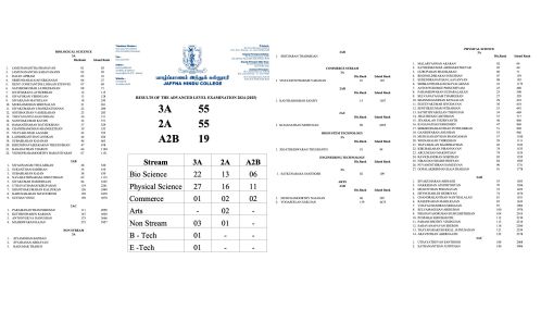 க.பொ.த உயர்தர பரீட்சையில் சாதனை படைத்த யாழ்ப்பாணம். இந்துக் கல்லூரியின் முழுமையான பெறுபேறுகள்!