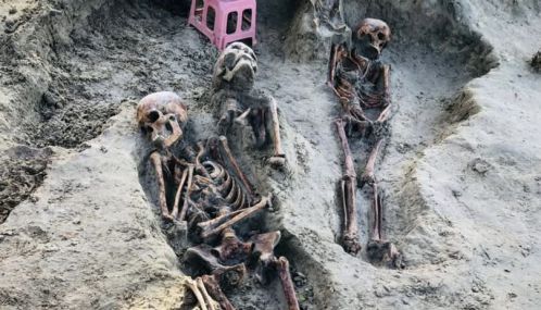 நீல நிறப் புத்தகப்பை, சிறுவர்கள் விளையாடும் பொம்மை போன்றவற் றோடு அடையாளம் காணப்பட்ட எஸ் – 25 என அடையாளமிடப்பட்ட என்புத் தொகுதி சிறுமியின் என்புத் தொகுதி எனவும், உத்தேசமாக 4 – 5 வயது டையதாக இருக்கும் எனவும் சட்ட மருத்துவ அதிகாரி மன்றில் தனது அறிக்கையை வெளியிட்டார்.மேலும் எஸ் – 48, எஸ் – 56 என அடையாளமிடப்பட்ட சிறுவர்களினுடைய என்புத் தொகுதிகள் எனச் சந்தேகிக் கப்படும் என்புத் தொகுதிகள், புத்தகப் பையோடு அடையாளம் காணப்பட்ட சிறுமியினுடைய என்புத் தொகுதியோடு உடைகள் மற்றும் என்பியல் சம்பந்தமாக ஒருமித்த தன்மைகள் இருப்பதாகவும் மன்றுக்கு சட்ட மருத்துவ அதிகாரியால் சுட்டிக்காட்டப்பட்டது.புத்தகப்பையோடு அடையாளம் காணப்பட்ட என்புத் தொகுதியில் மேற்கொள்ளப்பட்டது போன்ற என்பு ஆய்வை சிறுவர்களினுடையது என நம்பப்படும் குறித்த இரண்டு என்புத் தொகுதிகள் மீதும் மேற்கொண்டு அறிக்கை சமர்ப்பிக்குமாறும் மன்றால் அறிவுறுத்தப்பட்டது..