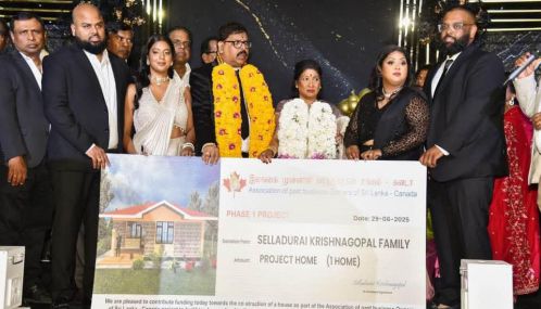 மேலும். இரண்டாவது நிதி அன்பளிப்பாக தற்போது கிழக்கிலங்கையில் கனடா- முன்னாள் இலங்கை வர்த்தகர்கள் சங்கத்தின் சார்பில் மேற்கொள்ளப்பெற்று வரும் வீடற்றவர்களான பத்து வீட்டுத் திட்டத்தில் அடங்கும் ஒரு வீட்டுக்கான செலவுத் தொகையான ஐயாயிரம் கனடிய டாலர்கள் பெறுமதியான மாதிரிக் காசோலை கனடா- முன்னாள் இலங்கை வர்த்தகர்கள் சங்கத்தின் முக்கிய இயக்குனர்களிடம் மேடையில் கையளிக்கப்பெற்றது
