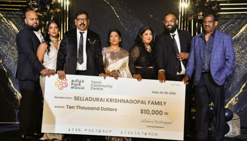 முதலாவது நிதி அன்பளிப்பாக தற்போது திட்டமிடப்பெற்று வரும் கனடாவில் அமையப் போகின்ற ‘தமிழர் சமூக மையம்’ ( Scarborough Tamil Community Centre ) நிதிக்காக கிருஸ்ணகோபால் செல்லத்துரை அவர்களது குடும்பத்தினர் வழங்கிய பத்தாயிரம் கனடிய டாலர்களுக்குரிய மாதிரிக் காசோலை ‘தமிழர் சமூக மையம்’ நிதிக்குழுவின் தலைவர் சாந்தா பஞ்சலிங்கம் அவர்களிடம் ஒப்படைக்கப்பெற்றது.