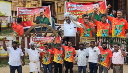 தமிழக தேர்தல் களம் சூடு பிடித்துள்ள நிலையில் யாழ்ப்பாணத்தில் பல இடங்களில் நாம் தமிழர் கட்சியின் தலைவர் சீமானுக்கு ஆதரவாக பதாகைகள் காட்சிப் படுத்தப்பட்டிருந்தன.