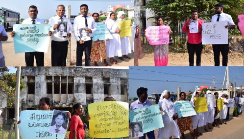 இன்று திங்கட்கிழமை காலை 8.30 மணி தொடக்கம் 9.30 மணி வரை குறித்த அமைதி போராட்டம் இடம்பெற்றது.
