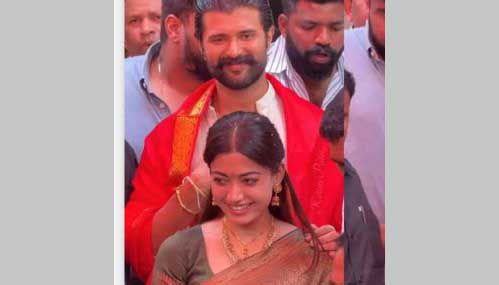 நடிகர் விஜய் தேவரகொண்டா- ராஷ்மிகா காதல் திருமணம் கடந்த 26-ந்தேதி உதய்ப்பூரில் நடந்தது. திருமண புகைப்படங்கள் ஏற்கனவே வெளியாகி சமூக வலைத்தள பக்கங்களில் பல மில்லியன்களை தாண்டி சாதனை படைத்தது. இந்நிலையில் மேலும் பல படங்கள் வெளியாகி வைரலாகி வருகிறது. திருமண விழாவிற்கு ராஷ்மிகா மந்தனா டோலியில் வரும் காட்சிகளும், விஜய் தேவரகொண்டா வாள் ஏந்திய படியும் இருக்கும் புகைப்படங்கள் சமூக வலைதளங்களில் டிரெண்டிங் ஆகி வருகிறது. இதனிடையே, விஜய் தேவரகொண்டா- ராஷ்மிகா தம்பதி புகழ்பெற்ற திருப்பதி ஏழுமலையான் கோவிலில் சாமி தரிசனம் செய்துள்ளனர். அதனை தொடர்ந்து பக்தர்களுக்கு இருவரும் இனிப்பு வழங்கினர். இதுதொடர்பான புகைப்படங்கள் மற்றும் வீடியோக்கள் தற்போது சமூக வலைத்தளங்களில் வைரலாகி வருகிறது. அப்புகைப்படங்களில் ராஷ்மிகா பாரம்பரிய காஞ்சிபுரம் புடவை அணிந்து தேவதை போல் காட்சியளிப்பதாக ரசிகர்கள் கூறி வருகின்றனர்.