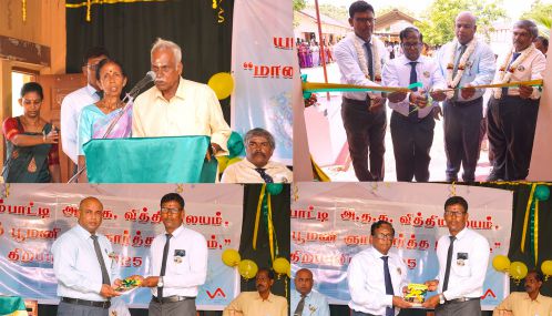 நூலகம் ஒன்று எவ்வளவு தூரத்துக்கு முக்கியமானது என்பதை நாங்கள் யாழ்ப்பாண நூலக எரிப்பிலிருந்து விளங்கிக் கொள்ளலாம். இன்று உங்கள் பாடசாலைக்கு நன்கொடையாக அமைத்து வழங்கப்பட்டுள்ள நூலகத்தை உரிய வகையில் பயன்படுத்தி உங்கள் கிராமத்துக்கும் – சமூகத்துக்கும் நற்பெயரைப் பெற்றுக்கொடுக்க வேண்டும் என மாணவர்களிடம் கோரிக்கை விடுத்தார் வடக்கு மாகாண ஆளுநர் நா.வேதநாயகன் அவர்கள்.