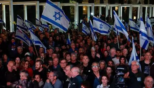 அவர்கள் கைகளில் இஸ்ரேல் கொடிகளை ஏந்தியபடியும், பேனர்களையும் ஏந்தியபடியும், ஒப்பந்தம் ஏற்படுத்த வேண்டும் என வலியுறுத்தி கோஷம் எழுப்பியபடி ஆர்ப்பாட்டத்தில் ஈடுபட்டனர்.