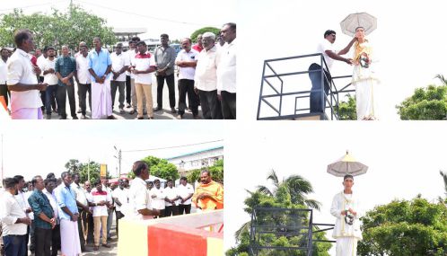 மன்னார் நகரில் சிதைக்கப்பட்ட தந்தை செல்வாவின் உருவச்சிலை புனரமைக்கப்பட்டு திறந்து வைப்பு.