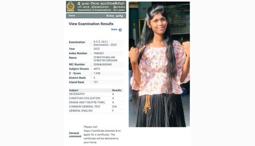 அண்மையில் வெளியாகி உள்ள 2025 (2026)ஆம் ஆண்டுக்கான உயர்தரப் பரீட்சை பெறுபேறுகளுக்கு அமைவாக மன்னார் நானாட்டான் டிலாசால் கல்லூரி மாணவி கிறிஸ்து ராஜன் கிறிஸ்டின் டிறோஜினி (CHRISTHU RAJAN CHRISTIN DIROGINI) கலைப் பிரிவில் 3 A பெறுபேறுகளைப் பெற்று மாவட்ட மட்டத்தில் 05 ஆம் இடத்தை வகித்துள்ளார். இந்த வெற்றியாளரை கல்லூரிச் சமூகம் பாராட்டியுள்ளது.