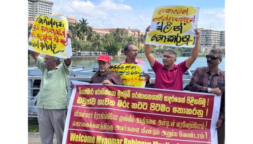 போர் அச்சம் காரணமாக மியன்மாரில் இருந்து தப்பி வந்த ரோஹிங்கியாக்களை மீண்டும் அந்த நாட்டுக்கு நாடு கடத்தக்கூடாது என வலியுறுத்தி சிவில் ஆர்வலர்கள், அரசியல் தலைவர்கள், தொழிற்சங்கத் தலைவர்கள் மற்றும் பலர் கடந்த வார இறுதியில் கொழும்பில் அமைந்துள்ள ஜனாதிபதி செயலகத்திற்கு முன்பாக ஆர்ப்பாட்டத்தில் ஈடுபட்டனர்.