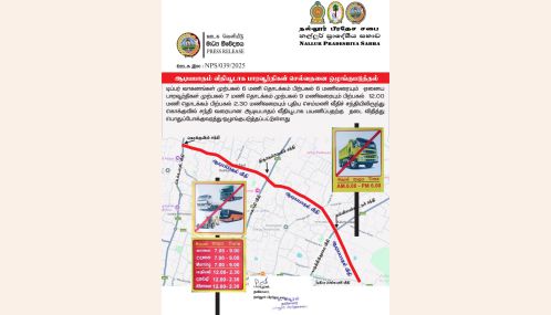 யாழ்ப்பாணம். புதிய செம்மணி வீதிச் சந்தியிலிருந்து கொக்குவில் சந்தி வரையான ஆடியபாதம் வீதியூடாக டிப்பர் வாகனங்கள் பயணிப்பதற்கு குறிப்பிட்ட நேரத்திற்கு மட்டுமே அனுமதி!