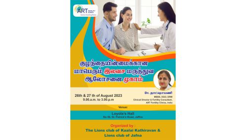 குழந்தையின்மைக்கான இலவச மருத்துவ ஆலோசனை முகாம் லயன்ஸ் கழகத்தின் ஏற்பாட்டில் யாழ்ப்பாணத்தில் இடம்பெறவுள்ளது.