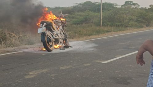 -மன்னார் திருக்கேதீஸ்வரத்தில் சிவராத்திரியை அனுஷ்டிப்பதற்கு யாழ் – மன்னார் பிரதான வீதியூடாக மன்னார் திருக்கேதீஸ்வரம் ஆலயம் நோக்கி இன்று மாலை இருவர் மோட்டார் சைக்கிளில் வந்து கொண்டிருந்த போது குறித்த மோட்டார் சைக்கிள் திடீரென தீப்பற்றியது.