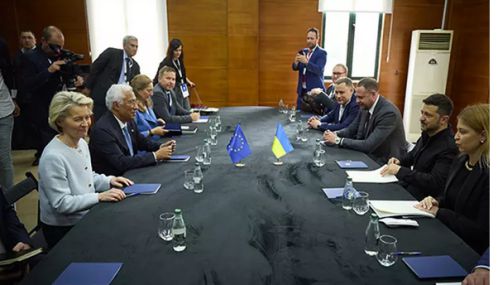 அப்போது ரஷியா மீதான சர்வதேச அழுத்தத்தை அதிகரிக்க வேண்டியதன் அவசியத்தை ஜெலென்ஸ்கி வலியுறுத்தினார், மேலும் அமைதியை அடைவதற்கான முதல் படி போர்நிறுத்தம் என்றும் அவர் தெரிவித்தார். ராணுவ ஆதரவை வலுப்படுத்துதல், உக்ரைனின் வான் பாதுகாப்பு மற்றும் பாதுகாப்பு உற்பத்தி திறன்களை மேம்படுத்துதல் மற்றும் ஐரோப்பிய ஒன்றிய உறுப்பினர் பதவியை நோக்கிய உக்ரைனின் பாதையை விரைவுபடுத்துதல் ஆகியவற்றிலும் பேச்சுவார்த்தைகள் கவனம் செலுத்தப்பட்டதாக தகவல்கள் தெரிவிக்கின்றன.