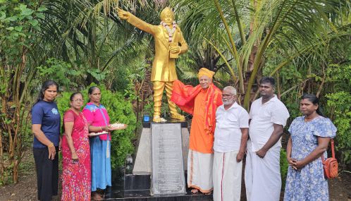 இதன்போது பாரதியாரின் திருவுருவச் சிலைக்கு மலர்மாலை அணிவித்து, மலர்தூவி அஞ்சலி செலுத்தப்பட்டது.