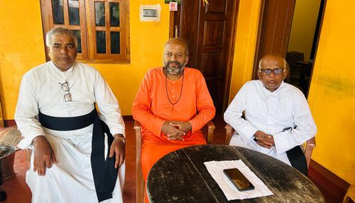 வலுக்கட்டாயமாக கைது செய்யப்பட் வேலன் சுவாமியை சந்தித்து நலம் விசாரித்த கத்தோலிக்க மதகுருமார்கள்!