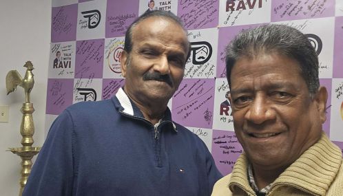கனடா- ஸ்காபுறோ நகரில உள்ள’யுகம் வானொலி’ கலையகத்தில் சந்தித்துக் கொண்ட ஊடகவியலாளர்கள் இருவர்