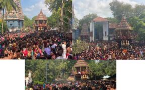 வரலாற்றுச் சிறப்புமிக்க யாழ்ப்பாணம் – தெல்லிப்பழை துர்க்காதேவி தேவஸ்தானத்தின் வருடாந்த மகோற்சவத்தின் இரதோற்சவம் இன்று பக்திபூர்வமாக இடம்பெற்றது. அதிகாலை 4.30 மணியளவில் ஆரம்பமான கொடித்தம்ப பூசையைத் தொடர்ந்து 09.00 மணியளவில் வசந்த மண்டப பூசை இடம்பெற்றது. வசந்த மண்டபப் பூசையைத் தொடர்ந்து துர்க்கையம்பாள் சமேதராக உள்வீதி ஊடாக வலம்வந்து, ...