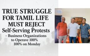 – வணிக நிறுவனங்கள் திங்கட்கிழமை 100% இயங்கும்” தமிழர் வாழ்விற்கான போராட்டம் உண்மையில் அனைத்து தமிழ் தரப்பினரும் ஒன்றிணைந்து முன்னெடுக்க வேண்டியது அவசியம் என தெரிவிக்கப்படுகிறது. ஆனால் சிலர் தனிப்பட்ட அரசியல், வியாபார மற்றும் சுய லாபத்திற்காக போராட்டங்களை முன்னெடுக்கிறார்கள்; இதுபோன்ற முயற்சிகளை மக்கள் பொருட்படுத்த வேண்டிய அவசியம் ...