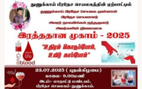 முன்னை நாள் துணுக்காய் பிரதேச செயலாளர் அமரர் நா.நந்தகுமார் நினைவாக இரத்ததான நிகழ்வு துணுக்காய் பிரதேச செயலகத்தில் புதன்கிழமை அன்று (23.07.2025) அன்று இடம்பெறுகின்றது துணுக்காய் பிரதேச செயலகத்தில் பிரதேச செயலாளராக பணியாற்றிய அமரர் நா.நந்தகுமார் அவர்கள் தனது கடமை நேரத்தின் போது 29.06.2007 உயிரிழந்திருந்தார் அவரது நினைவு ...