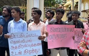 தொல்பொருள் தளத்தை சேதப்படுத்திய குற்றச்சாட்டில் நீதிமன்றத்தில் முன்னிலைப்படுத்தப்பட்ட பின்னர் விளக்கமறியலில் வைக்கப்பட்டுள்ள முல்லைத்தீவைச் சேர்ந்த இரண்டு தமிழ் விவசாயிகளை நிபந்தனையின்றி விடுவிக்கக் கோரி யாழ்ப்பாணப் பல்கலைக்கழக மாணவர்கள் போராட்டம் நடத்தியுள்ளனர். மே 29 அன்று முல்லைத்தீவு நீதவான் நீதிமன்றத்தில் முன்னிலைப்படுத்தப்பட்ட சாமித்தம்பி ஏகாம்பரம் மற்றும் ஸ்ரீரத்தினம் கஜரூபன் ஆகிய ...