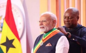 பிரதமர் மோடி 5 நாடுகள் பயணமாக டில்லியில் இருந்து புறப்பட்டு சென்றார். முதலில், கானா நாட்டுக்கு சென்றார். பிரேசில் நாட்டில் நடக்கும் ‘பிரிக்ஸ்’ மாநாட்டில் பங்கேற்கிறார்.பிரதமர் மோடி, கானா, டிரினிடாட் அண்ட் டுபாகோ, அர்ஜென்டினா, பிரேசில், நமீபியா ஆகிய 5 நாடுகளுக்கு ஒரு வார கால பயணமாக செல்ல ...