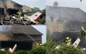 ஜெர்மனி நாட்டின் எர்புருட் நகர் அருகே அல்கர்செல்பென் பகுதியில் இருந்து முசென்கல்பச்ட் விமான நிலையத்திற்கு நேற்று காலை சிறிய ரக விமானம் புறப்பட்டது. அந்த விமானத்தை 71 வயதான மூதாட்டி ஓட்டிச்சென்றார். நெதர்லாந்து எல்லை அருகே கொர்சன்பரிச் பகுதியில் நடுவானில் பறந்துகொண்டிருந்தபோது விமானியின் கட்டுப்பாட்டை இழந்த விமானம் வீட்டின்மீது ...
