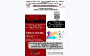 ஒன்றாரியோ மாகாணத்தில் வாழும் தமிழ் பேசும் மாணவர்கள் தங்கள் உயர் கல்வியை எவ்வாறு தொடர்வது என்பது பற்றிய பயனுள்ள கருத்தரங்கு நடைபெறுகின்றது. கனடா வாழ் இலங்கை பட்டதாரிகள் சங்கத்தின் ஏற்பாட்டில் இந்தக் கருத்தரங்கு நடைபெறுகின்றது என்பது குறிப்பிடத்தக்கது.