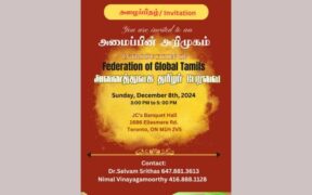 கனடாவின் ஸ்காபுறோ நகரில் அமைந்துள்ள ஜேசிஎஸ் விழா மண்டபத்தில் நாளை 8ம் திகதி ஞாயிற்றுக்கிழமை நடைபெறவுள்ள அனைத்துலக தமிழர் பேரவை என்னும் சர்வதேச தமிழர் அமைப்பின் அறிமுகக் கூட்டத்திற்கான அழைப்பு கனடா வாழ் அரசியல் செயற்பாட்டாளர்களான திருமதி செல்வன் ஶ்ரீதாஸ் மற்றும் திரு நிமால் விநாயகமூர்த்தி ஆகியோரால் விடுக்கப்பட்டுள்ளது. ...