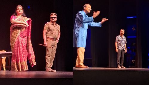 The evening began with a nostalgic audiovisual medley featuring highlights from the group’s eleven past productions, bringing back fond memories for long-time patrons. This was followed by the much-anticipated inauguration of the brand-new comedy play, Sing & Bung — Partha’s twelfth original script, which promises to carry forward the group’s tradition of witty storytelling and engaging performances.
