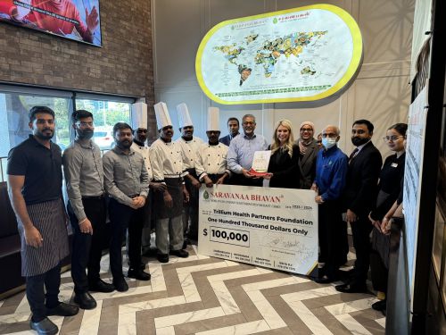 மிசிசாகாவில் மருத்துவச் சேவையாற்றும் Trillium Hospital – Trillium Health Foundation வைத்தியசாலைக்கு $100,000 நன்கொடை வழங்கிய சரவணபவான் சைவ உணவக நிறுவனம்