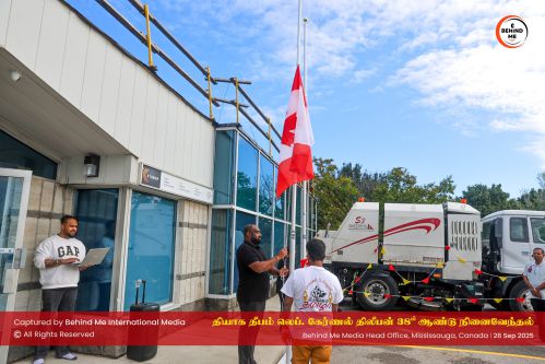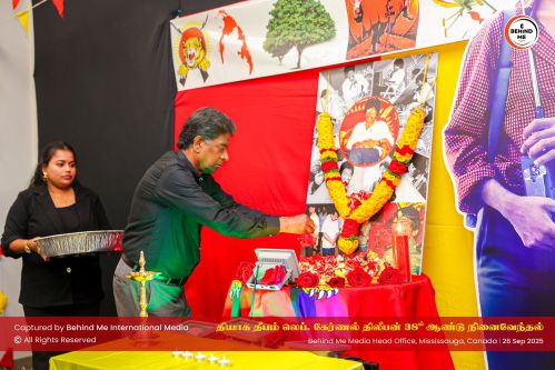 இவ்வாறு மிசிசாகா மாநகரில் கடந்த 26-09-2025 அன்று வெள்ளிக்கிழமை காலை BEHIND ME INTERNATIONAL MEDIA INC ஊடக நிறுவனம் தனது அலுவலக வளாகத்தில் நடத்திய ‘`தியாக தீபம்` திலீபன் அவர்களின் நினைவேந்தல் நிகழவில் பிரதான உரையாற்றிய ஊடக நிறுவனத்தின் BEHIND ME INTERNATIONAL MEDIA INC அதிபர் கனேந்திரன் செல்வராஜா அழைப்புவிடுத்தார்.
