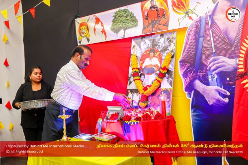 மிசிசாகா மாநகரில் BEHIND ME INTERNATIONAL MEDIA INC ஊடக நிறுவனம் நடத்திய ‘`தியாக தீபம்` திலீபன் அவர்களின் நினைவேந்தல் நிகழவில் ஊடக நிறுவனத்தின் அதிபர் கனேந்திரன் செல்வராஜா அழைப்பு